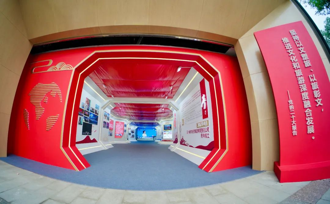 “堅持以文塑旅、以旅彰文,推進文化和旅游深度融合發(fā)展”。走進四川文化和旅游企業(yè)展館,黨的二十大報告中對文旅發(fā)展的要求便映入眼簾。通過設置“序、初心使命、奮斗征程、筑夢未來”四個部分,以圖文視頻、實物展陳相結合,輔以各項新科技手段的方式詳盡地向觀展賓客講述了其從無到有、從小到大、從弱到強、從優(yōu)到精的蛻變歷程。